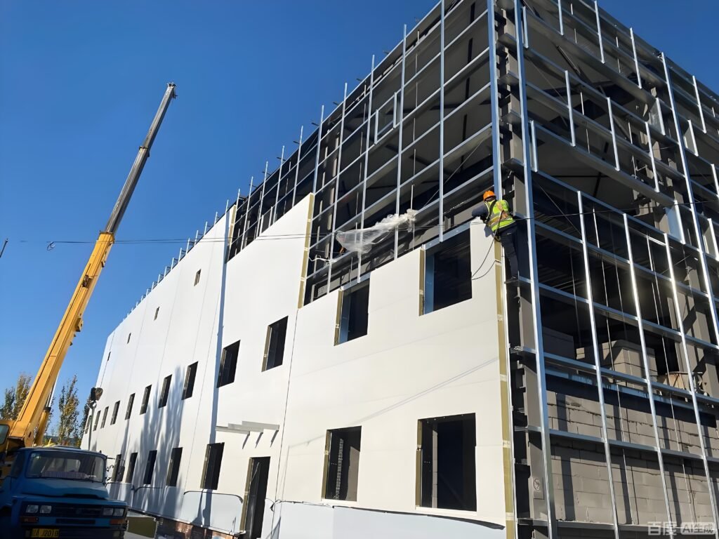 • Simultaneous Construction, Extreme Speed: While or shortly after the main steel structure is erected, rock wool sandwich wall panels and roof panels can be installed on a large scale. The panels are large-sized and lightweight (compared to masonry), installation is like “building blocks,” uses dry construction, is less affected by weather, and can shorten the total construction period by 30%-50%.